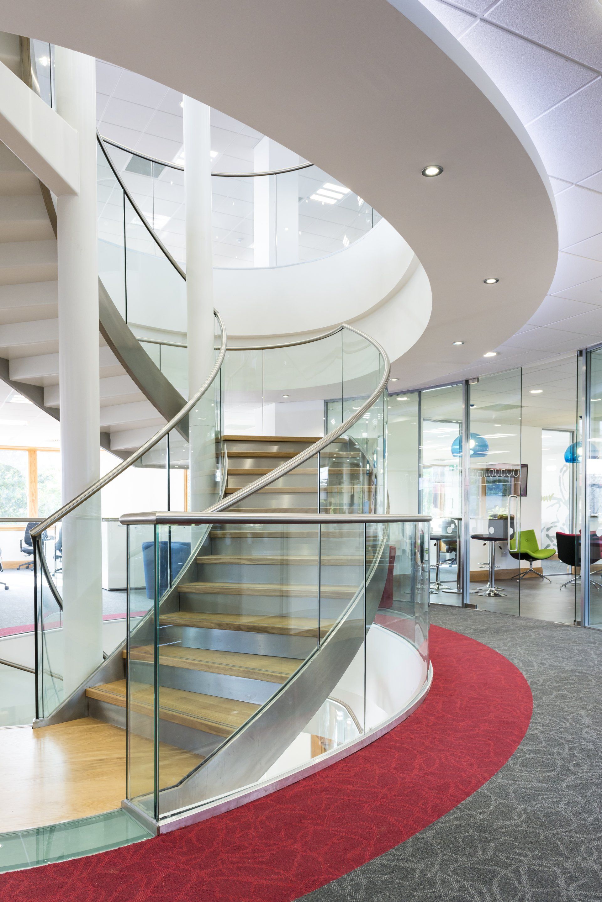 Majestic Wine entrusted us with the design of their head office in Watford. A sweeping staircase forms the central circulation space and hub of the building, creating interaction between employees at all levels.